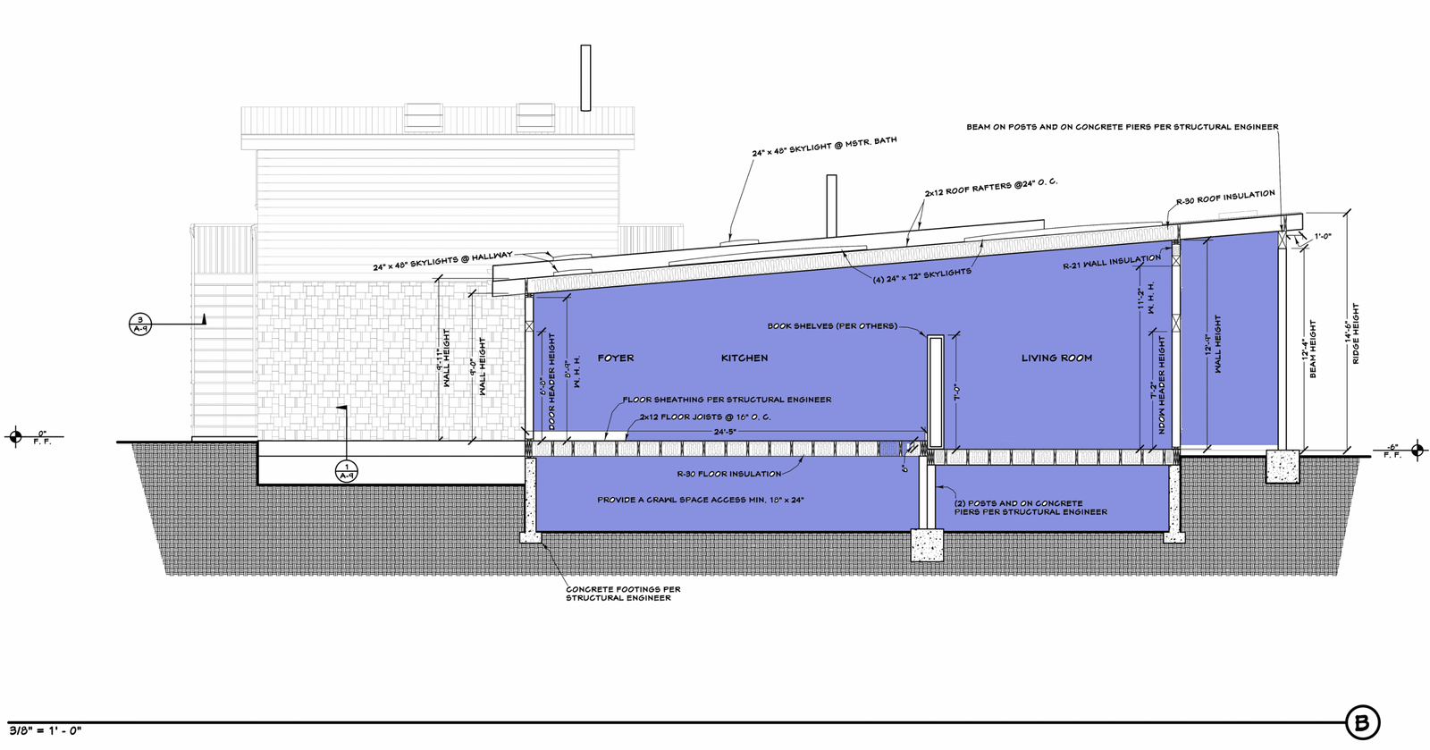 Section Drawing of the Ropp Garage Addition as part of my drafting home plans process in designing every project.