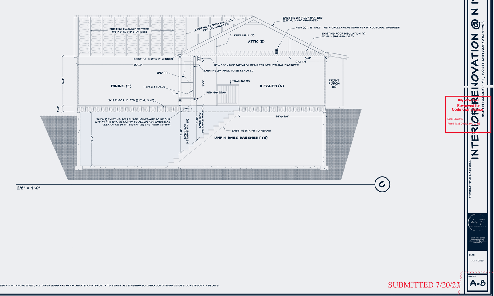 The owners of the property were keen to expedite the permit, and I worked closely with them to respond to checksheets requested by plan examiners to ensure the approval of the project. To meet the usual engineering requirements, I also routed the plans to a structural engineer for calculations.